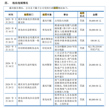 2025年3月,该公司再次因特种作业人员未持证上岗被青岛市黄岛区应急管理局处以8万元罚款,随后进行了人员调整并取得“不属于严重安全生产违法行为”的证明。