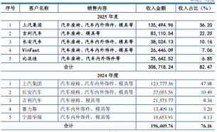 其中,对第一大客户上汽集团的依赖尤为突出,销售占比分别为55.38%、47.98%及36.20%,虽呈下降趋势,但依赖性依旧不可忽视。