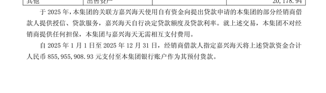与此同时,公司与嘉兴海天小额贷款有限公司合作,为经销商提供融资服务。经销商作为借款人,指定嘉兴海天将8.56亿元作为预付货款支付给海天味业。这样来看,嘉兴海天借钱给经销商,经销商用这笔钱向海天味业进货。