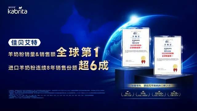 弗若斯特沙利文也盖章确认,佳贝艾特在全球羊奶粉的销量和销售额上,双双排第一。