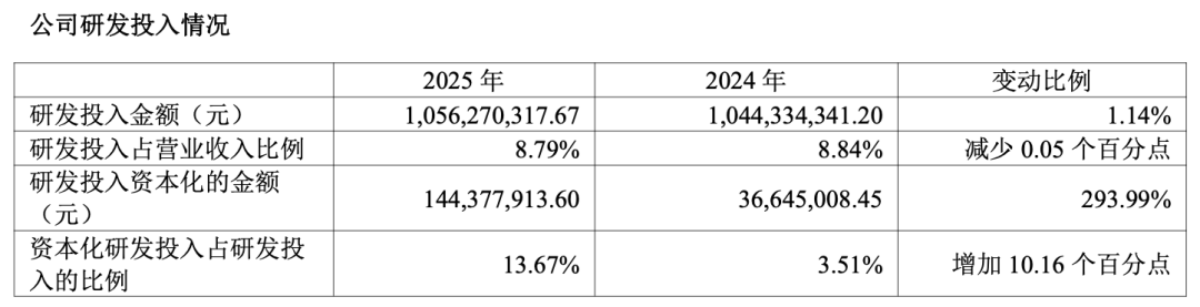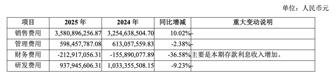 在营收微增的前提下,公司的多项费用开支均出现了不同幅度的缩减。2025年,丽珠集团的管理费用同比下降2.38%,研发费用下降9.23%至9.38亿元。