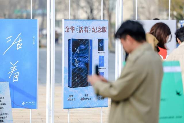 现场,《活着》纪念版特展也在市集旁同步开展,展出《活着》手稿、多语言版本封面、限量文创周边等,让读者更直观地感受经典作品的文化价值。数据显示,近两年余华图书作品在抖音电商累计售出超400万单,其中《活着》是最热销作品之一。