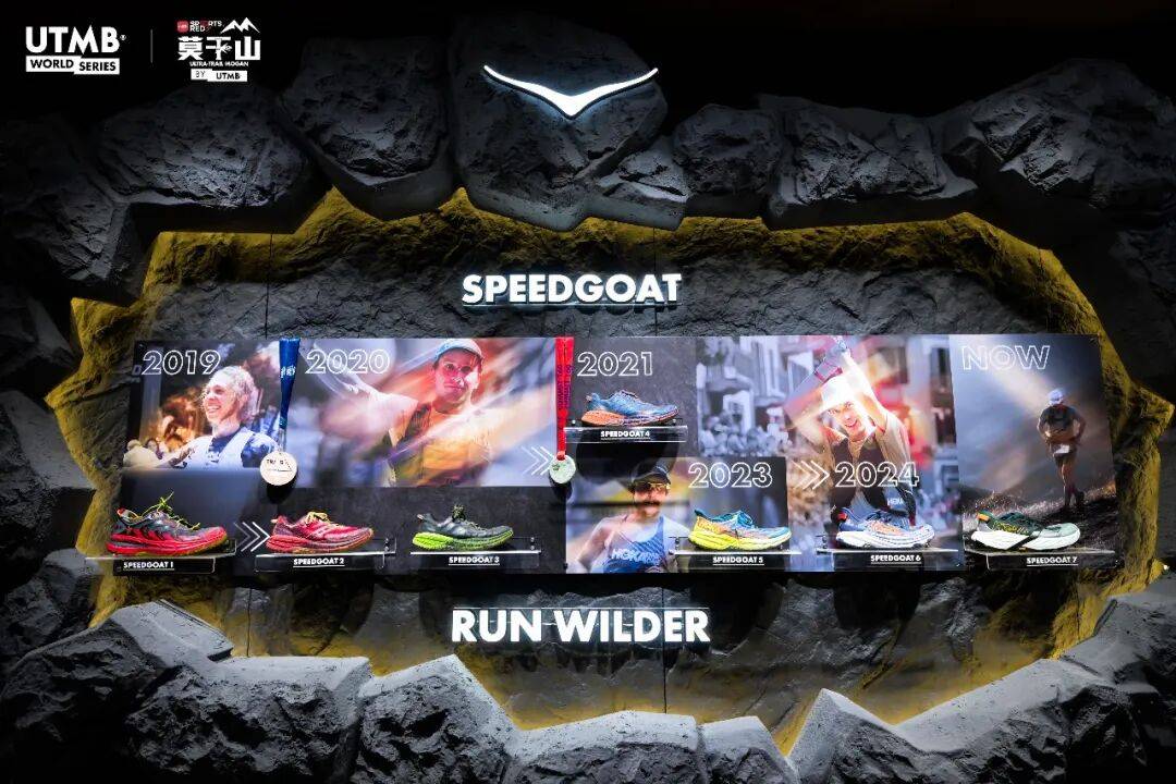 其中,品牌的王牌系列,全新一代SPEEDGOAT在莫干山by UTMB上完成了首次比赛亮相。放眼莫干山竹林赛道中,HOKA直接把Booth全都做成了羚羊象征的符号,这不仅是对这款经典鞋型的致敬,更是向世界宣告:那个统治山径的“GOAT”(Greatest Of All Time)——SPEEDGOAT 7正式回归。