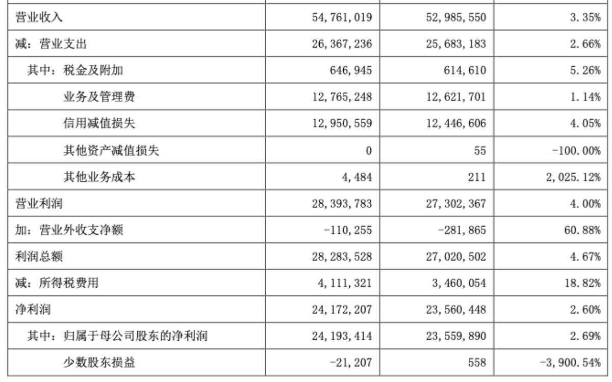 4月23日晚,上海银行(601229.SH)发布了2025年年报。据年报显示,2025年,上海银行实现营业收入547.61亿元,同比增长3.35%;实现归母净利润241.93亿元,同比增长2.69%。