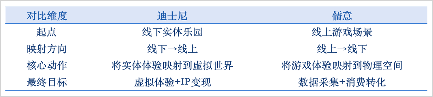只不过,迪士尼的路径是从线下到线上,把实体乐园体验映射到虚拟世界;而儒意如果走这条路,方向正好相反,需要把游戏场景和体验映射到线下物理空间,从而完成数据采集和消费转化。