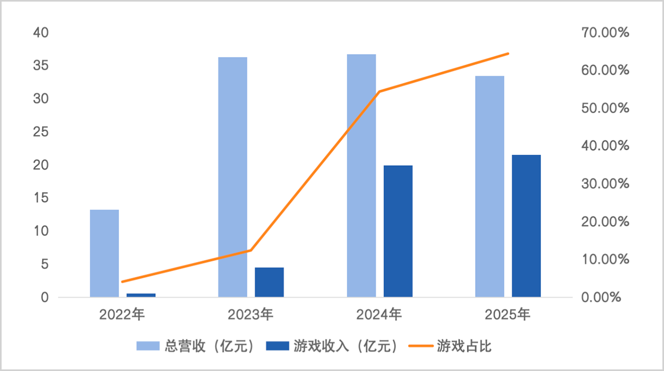 据财报显示,2025年,中国儒意全年营业收入为33.43亿元,经调整净利润达19.63亿元,同比大幅增长84%,净利润扭亏为盈至17.86亿元。其中,游戏服务收入21.49亿元,收入占比从54.26%提升至64.28%,不仅是拉动业绩增长的主力军,也已取代影视成为基本盘。