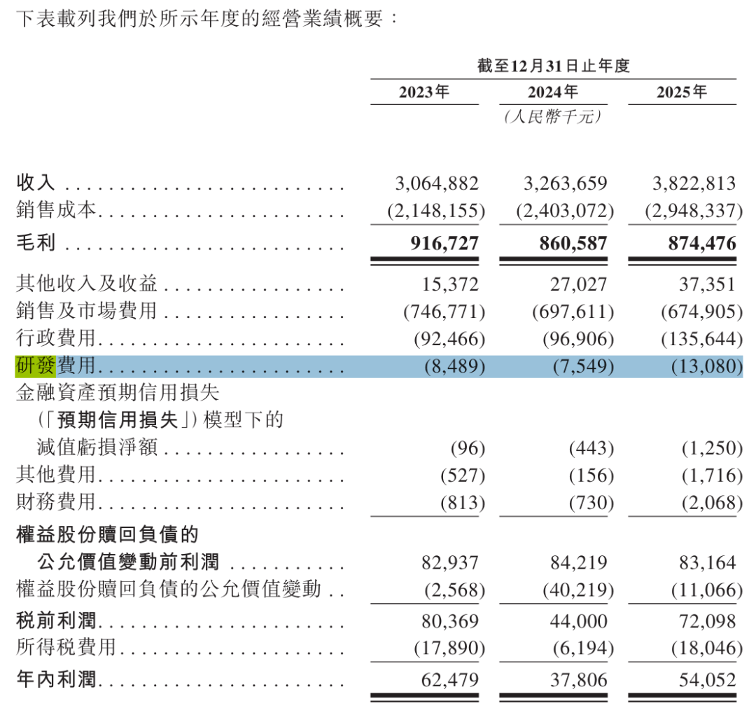 与此同时,公司在销售费用上却毫不吝啬。2023年至2025年,销售及市场费用分别高达7.47亿元、6.98亿元和6.75亿元。尽管2025年有所收缩,但其占营收比重仍达17.6%。