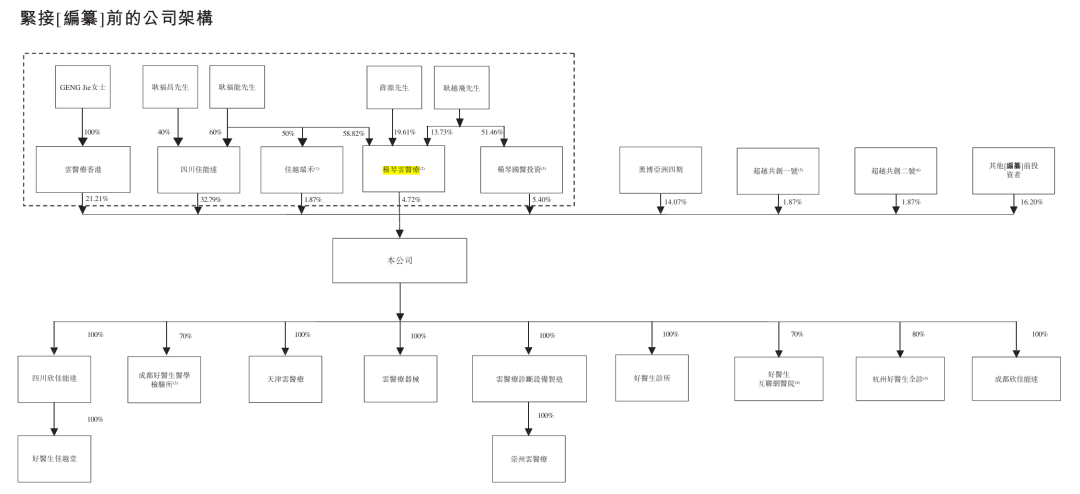 招股书显示,创始人耿福能与其胞弟耿福昌通过四川佳能达投资有限公司(以下简称“四川佳能达”)持股32.79%;耿福能之女耿介通过云医疗香港持股21.21%;耿福能之子耿越飞控制的横琴国医投资持股5.40%;此外还有由家族控制的横琴云医疗、佳越瑞禾等持股平台。