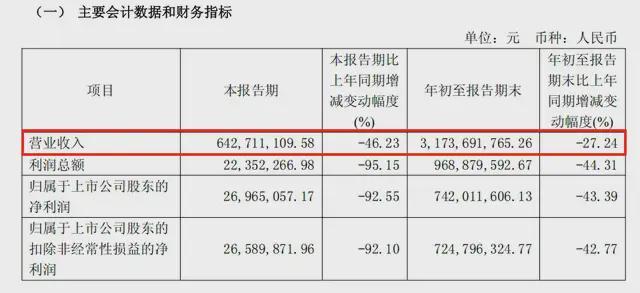 二季度营收7.21亿元,同比下滑48.48%;三季度营收6.43亿元,下滑46.23%,归母净利润只剩2700万,暴跌92.55%;到了四季度,直接亏损6868万元。