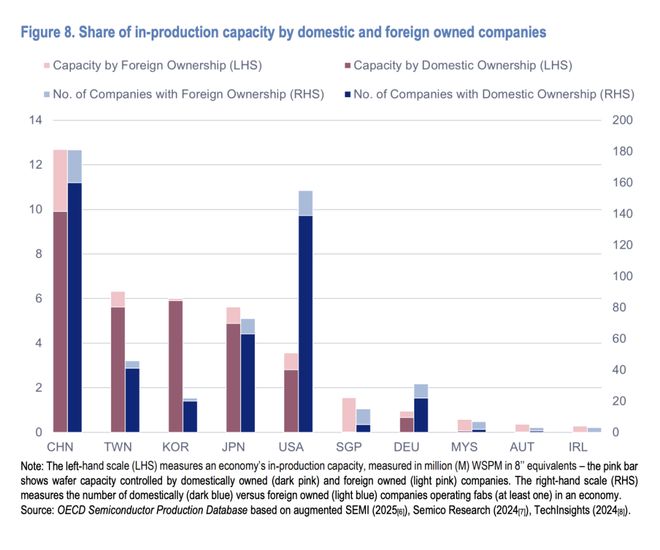 尽管全球半导体价值链具有高度的跨国相互依存性,但大部分产能仍掌握在本国运营的公司手中。一种可能的解释是,这些公司熟悉当地的监管框架和生态系统:建设晶圆厂需要资本密集,需要与高度专业化的建设公司、技术和基础设施供应商合作,同时还要应对复杂的监管环境。