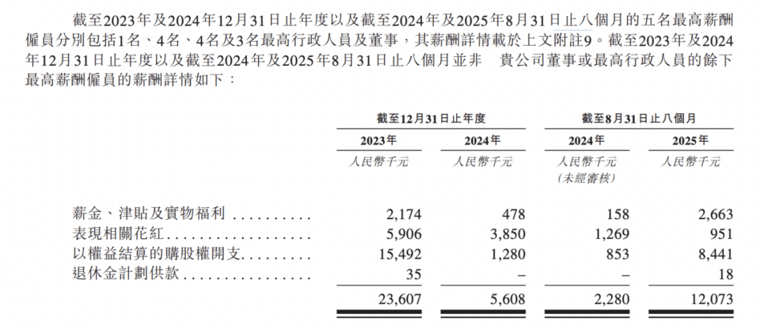 还可以看到的是,翰思艾泰在高管薪酬上较为大方,仅2025年前八个月就为五名最高薪酬人士开出1207万元工资。