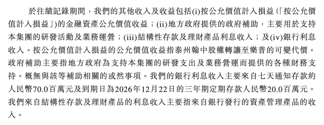这是由于2024年前8个月,公司在递表前因向乐普生物出售剩余9%的泰州翰中股权,确认了一笔高达1069万元的一次性公允价值收益,占当时总收入的86.9%。