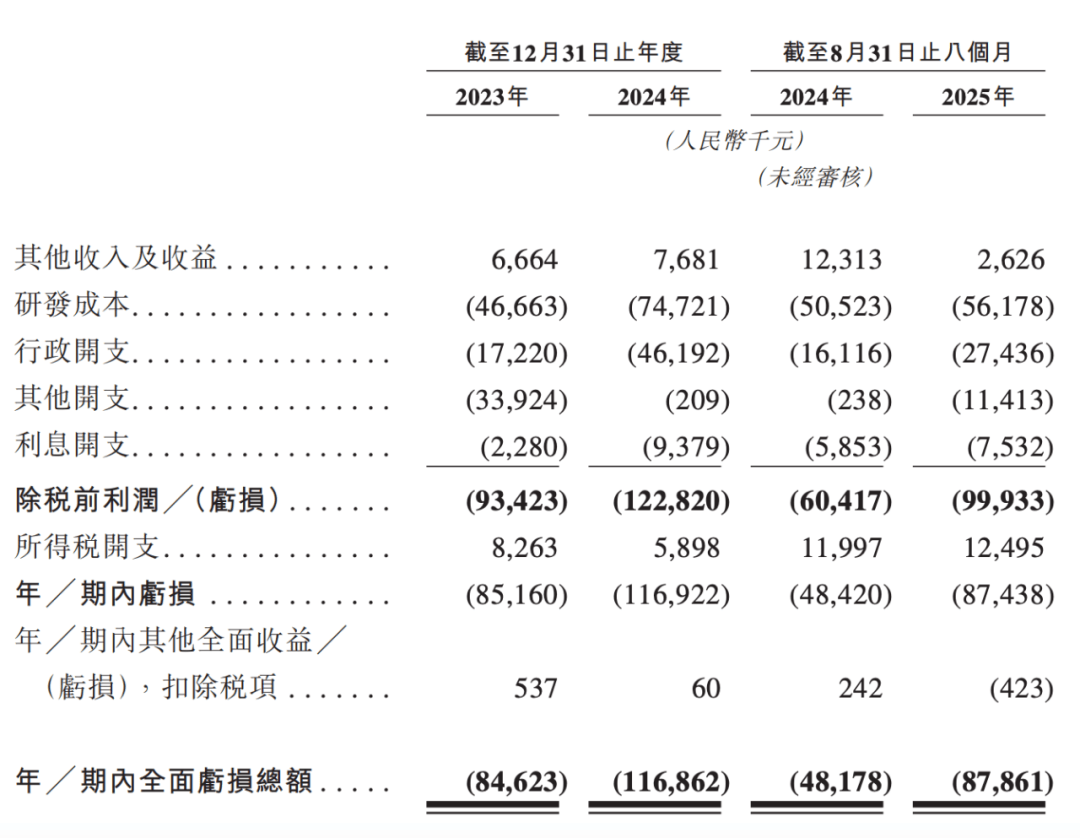 2023年与2024年,公司的研发开支分别为4666万元与7472万元,亏损规模也随之从8516万元扩大至1.17亿元。但增长更快的却是公司的行政开支,由1722万元飙升至4619万元。