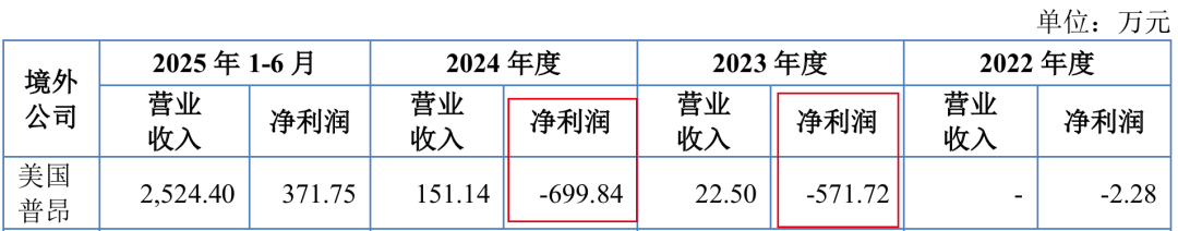 值得注意的是,在2023年和2024年,美国普昂这两年的营收合计不足200万元,甚至还未实现盈利,净利润分别亏损了571.72万元、699.84万元。