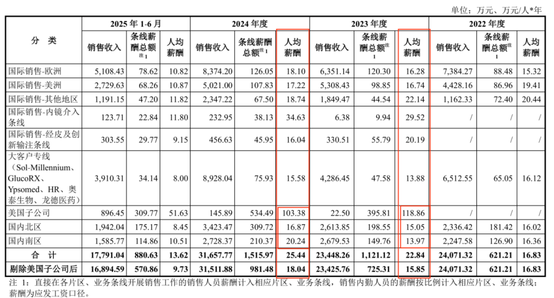 与之形成鲜明对比的是,国内销售人员的人均薪酬还达不到公司内部的平均水平。2023年和2024年,国内北区销售人员的人均薪酬分别为15.05万元、16.87万元;国内南区销售人员的人均薪酬为13.97万元、20.24万元。