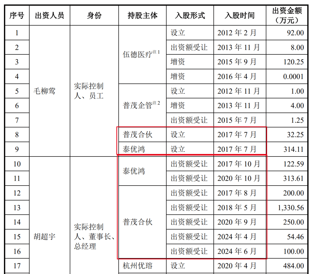 2017年7月,普迈企管、普茂企管的股权分别整体平移至泰优鸿、普茂合伙。此后,毛柳莺的配偶胡超宇通过收购的方式,入股泰优鸿、普茂合伙。