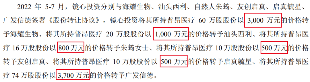 到了2022年5-7月,镜心投资又将所持190万股份全部转让,套现9500万元,单价已经达到50元/股。