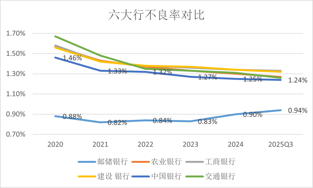 导语:六大银行中,净息差和不良率最好的邮储银行为何估值不高? 2025年是银行股的牛市,但邮储银行却表现平庸。